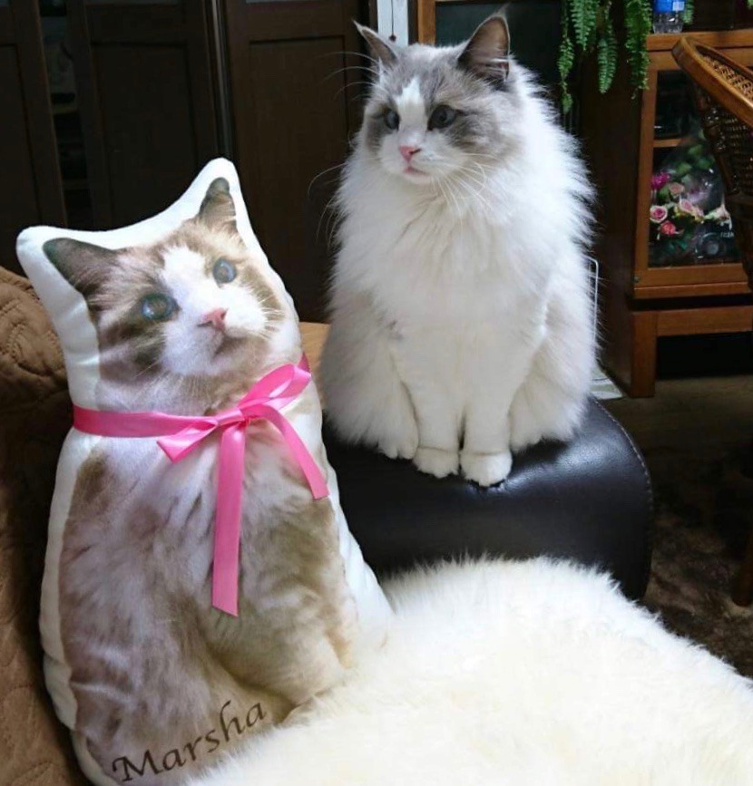 ところで先日のキャットショーでお披露目した「うちの子そっくりさんモフモフクッション」