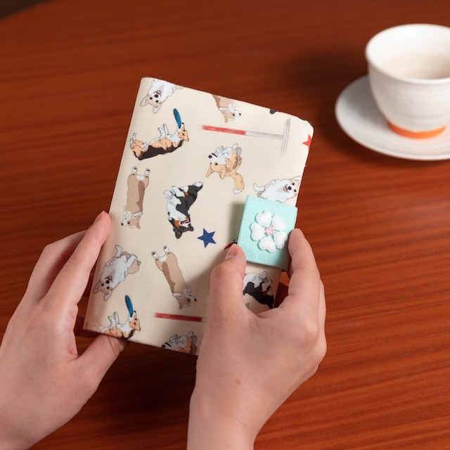 カバーに使用しているのはお店では売っていないとても素敵なイラストの生地。
