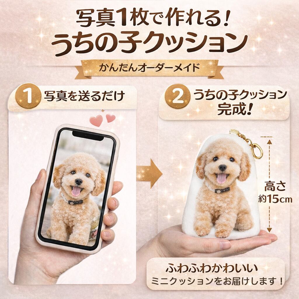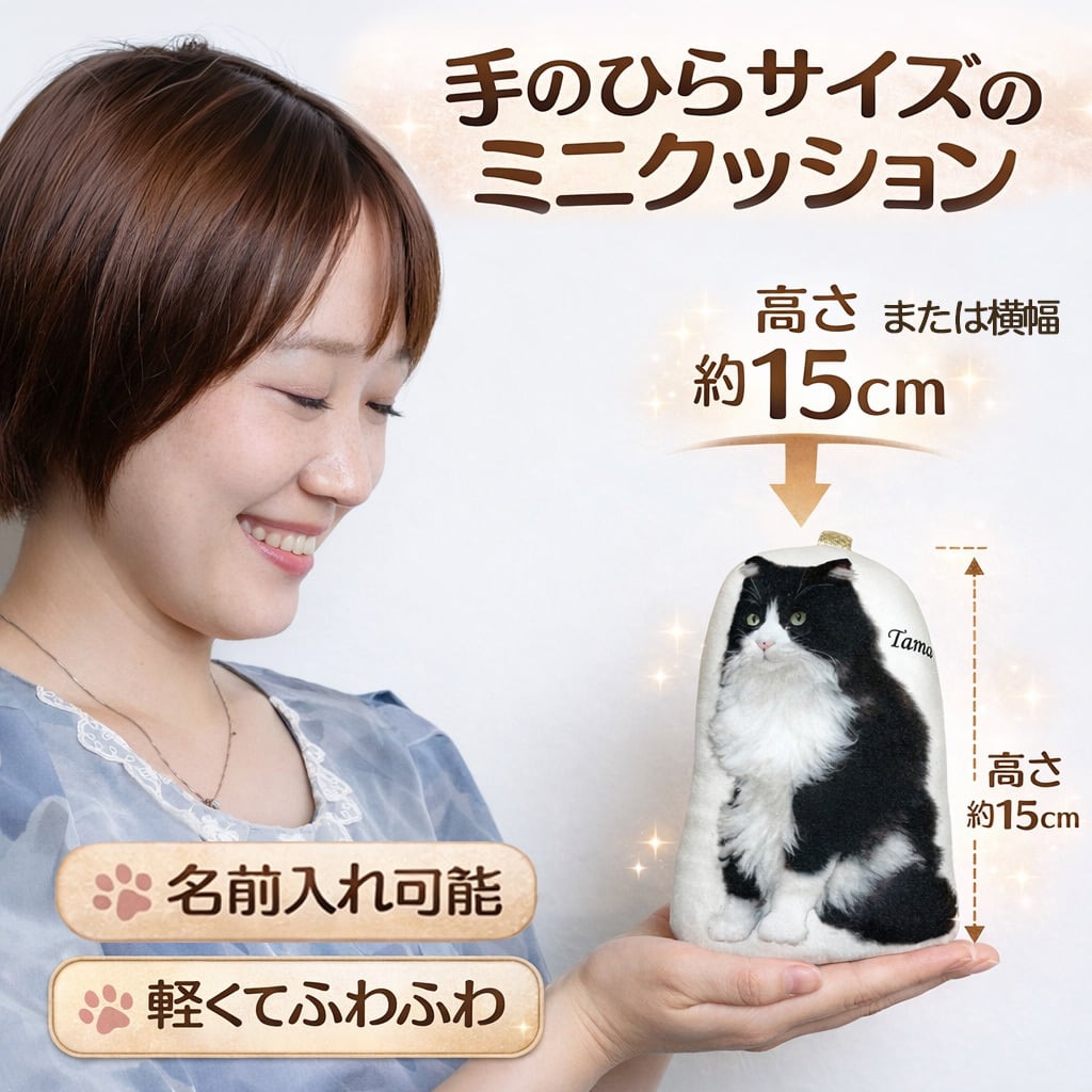 「うちの子グッズ ミニクッション」は、愛するペットの写真を使って作ることができるオリジ