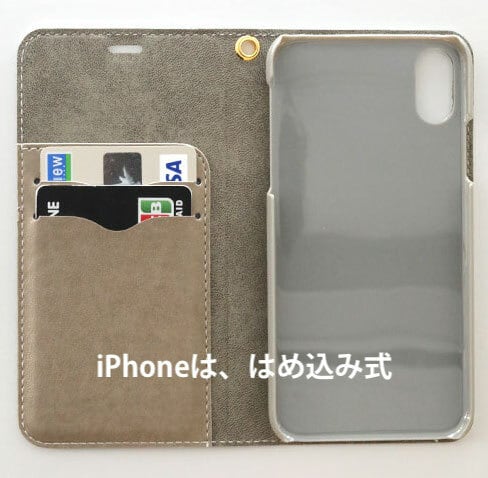 手帳部分がポリウレタン樹脂、i-phoneはスマートフォン本体のはめ込み部分はポリカーボネート樹脂(プラスティック)となっています。