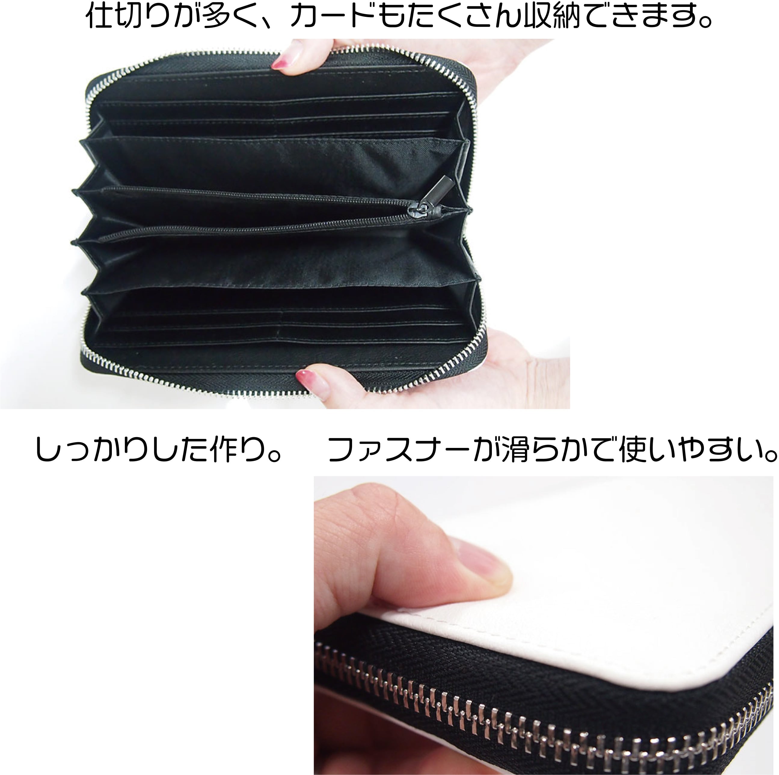 財布としての機能性も高いのが特徴。ジップを開けると大きく開いて中身が見やすく、収納のしやすさも追求したオリジナル財布です。