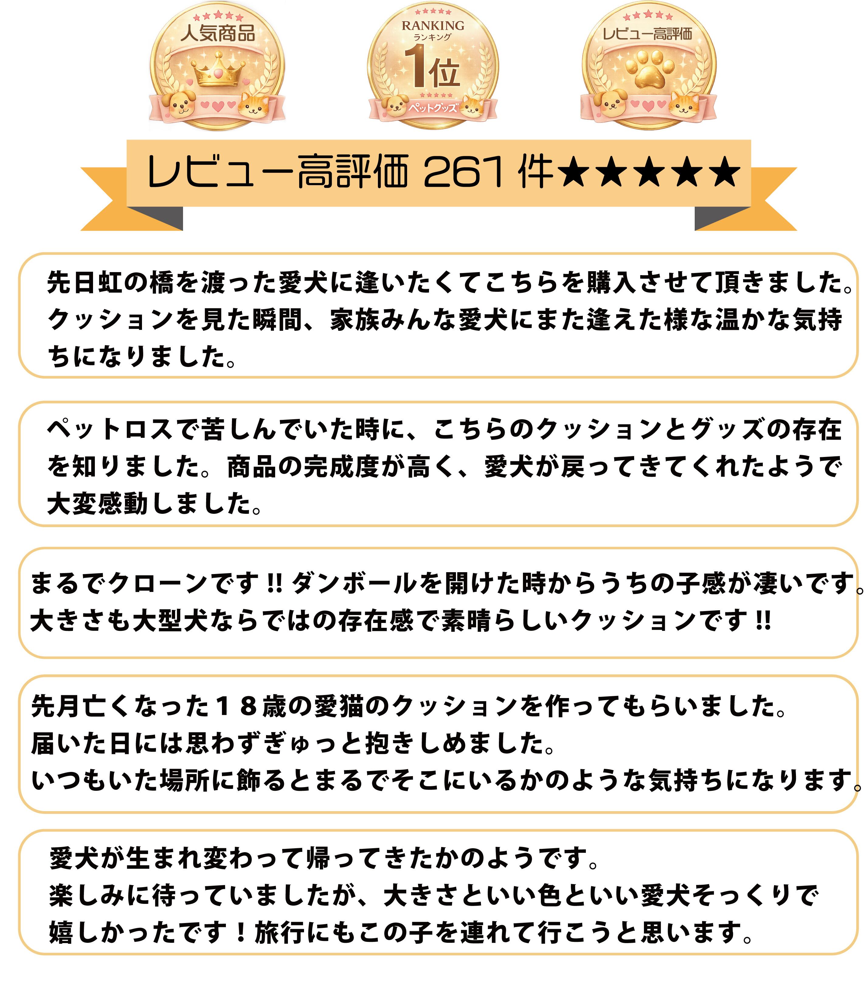 残念ながら虹の橋を渡ってしまった子のためには、+1000円でこのチビクッションを
