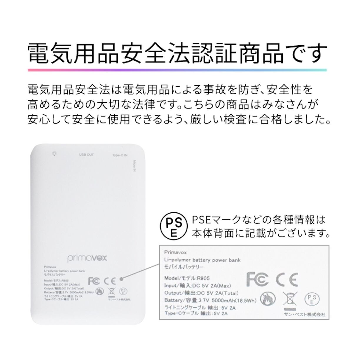 当製品は安心・安全のPSE認証。