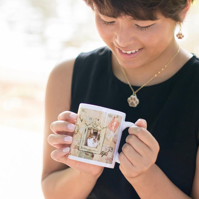 可愛いペットの写真であなただけのオリジナルマグカップが出来ちゃいますよ。